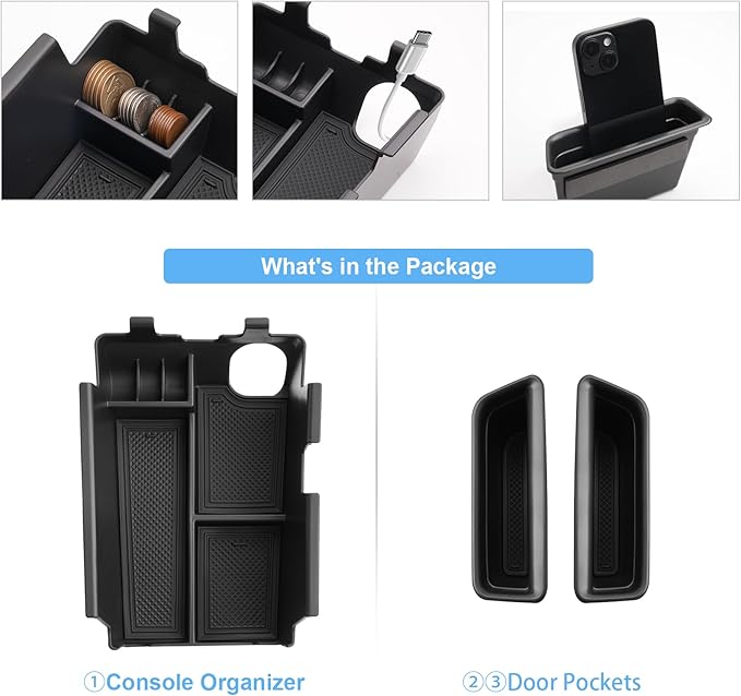 - 【Non-Destructive Installation】The size of Mustang (2024-2026) console armrest organizer and door storage pockets is developed according to the original car data, which is a perfect match. No need to use screws or glue, you can install it without any tools. Package Included (1*Console Armrest Organizer; 2*Door Side Storage Pockets)